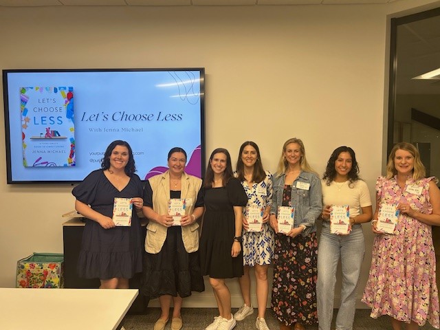 Jenna Michael ’11, author of \”Let’s Choose Less: A Young Family’s Guide to Simply Living\” shared advice and best practices with fellow mothers of the Elon Charlotte community